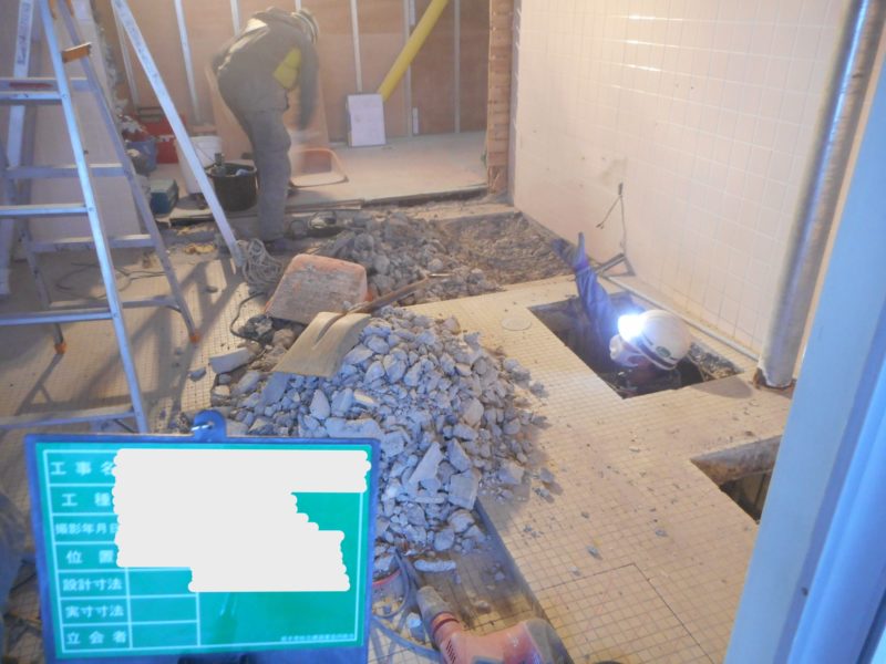 多目的トイレの新設や、床全体をモルタルでかさ上げして