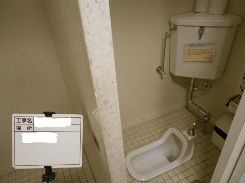 和式から洋式に変更工事です。 便器を撤去しタイルを補修して洋式便器を設置しました。