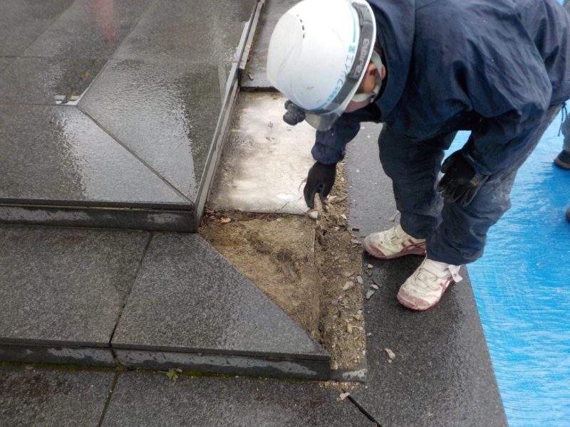 不良部部分を撤去したのち、タイルを再利用し、復旧しました。