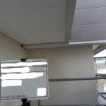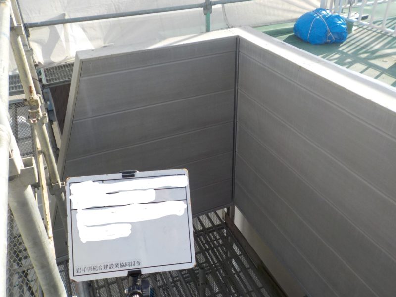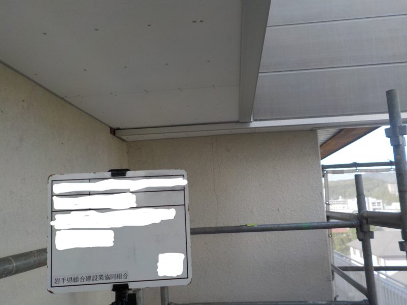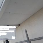 煙突新設の為、既存の庇をコ型に撤去し鉄骨下地の上に 押出成形セメント板を張りました。